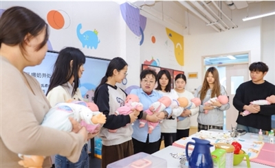 12月24日,在山东青岛恒星科技学院未来教育学院实践教学基地,老师向学生演示新生儿日常照护技能。近年来,青岛市李沧区依托专业院校构建“产教融合、校企一体”的人才培养体系。鼓励高校积极开展托育人才培养,设立学前教育、早期教育以及婴幼儿托育服务与管理专业,创新实施“泛在式+学社制”教学模式,推行“专业导师+企业师傅”双轨育人,为社会输送了大批托育人才,助力实现“幼有所育、幼有善育”。